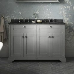 Old London 1200mm Cabinet & Double Bowl Grey Marble Top – Storm Grey