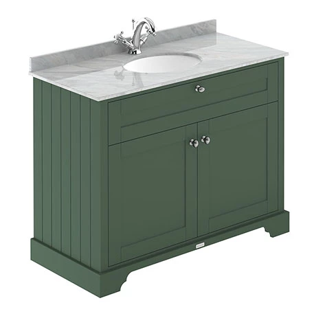 Old London 1000mm Cabinet & Single Bowl Grey Marble Top – Hunter Green