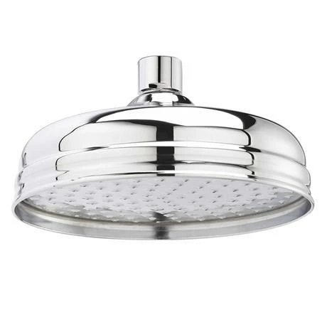 A luxury traditional fixed shower head with a diameter of 8″ from period bathroom specialists Old London. With a stunning rainfall effect, the shower head is finished in chrome and is suitable to be fitted to any arm with a standard 1/2″ connection.