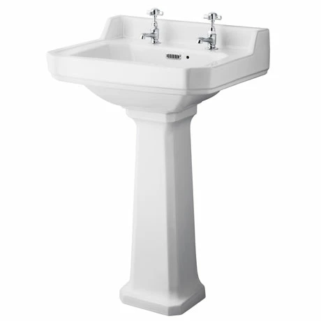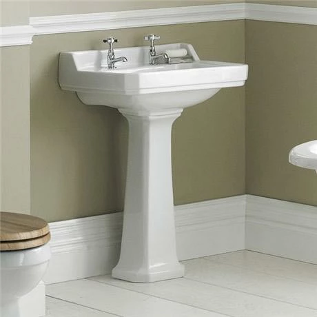 A high-quality traditional 2 tap hole basin with overflow and full pedestal from period bathroom specialists Old London, ideal for creating a period look in your bathroom. Manufactured using high-grade vitreous china ensuring a quality finish and long lasting durability. Bring a touch of elegance and style into your bathroom with the sublime Richmond collection of sanitary ware. Comes with a 5 year guarantee against faulty workmanship or materials.