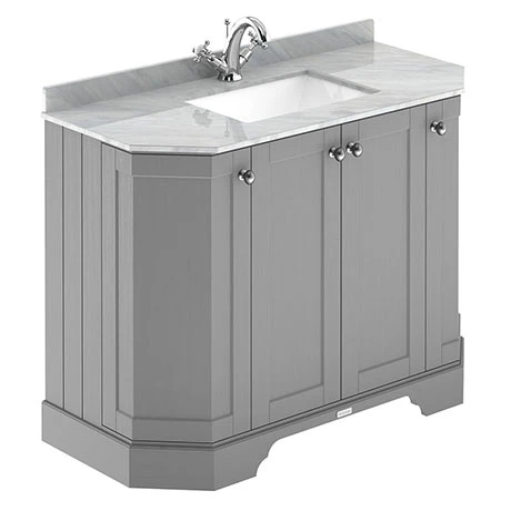 Old London Storm Grey Art Deco 1000mm Angled Cabinet with Grey Marble Basin Top