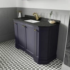 Old London Twilight Blue Art Deco 1000mm Angled Cabinet With Black Marble Basin Top